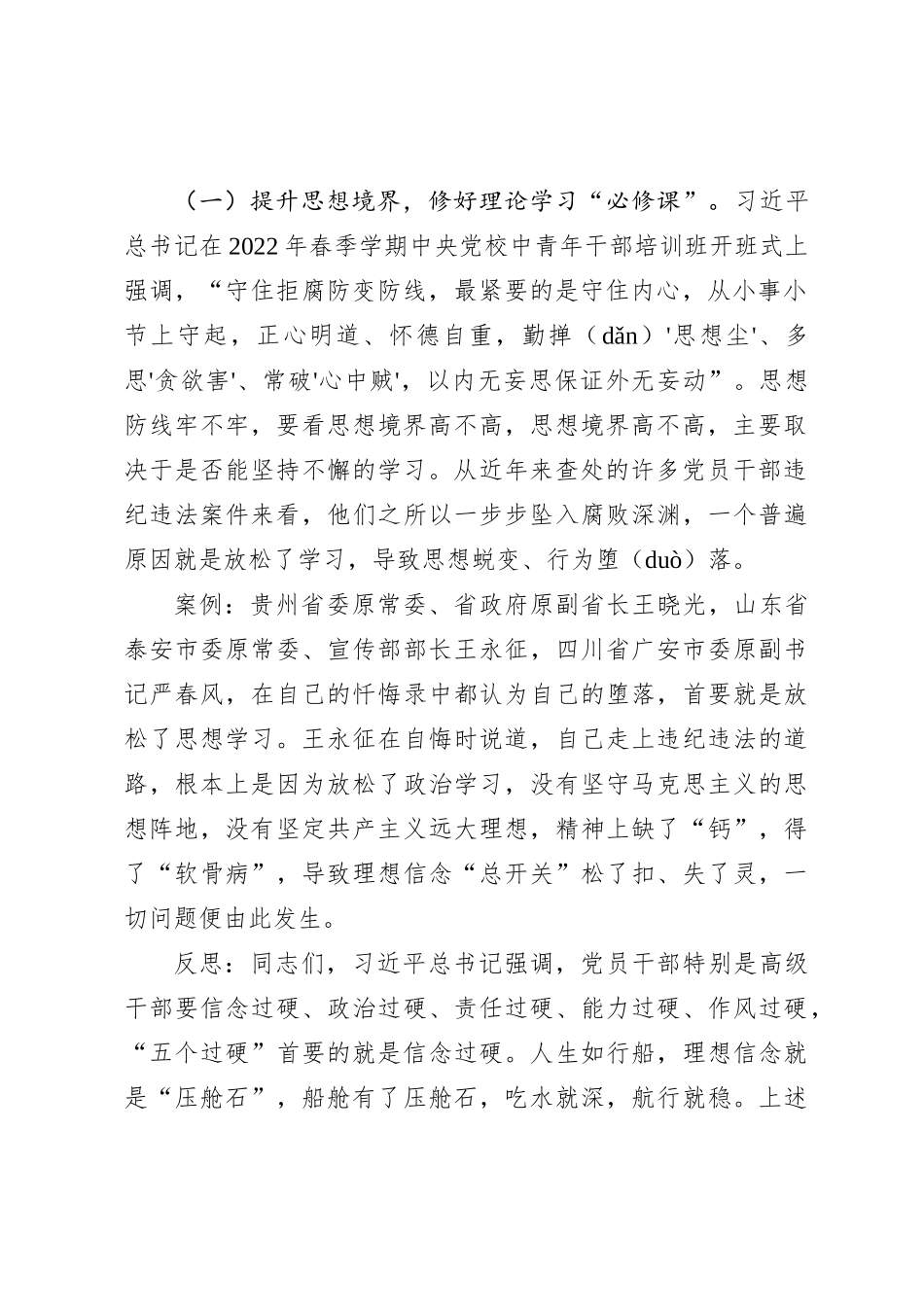 — 1 —集体廉政谈话党课:坚定理想信念消除侥幸心理净化人际关系案例反思同志们:党的 XX 大作出“坚定不移全面从严治党,深入推进新时代党的建设新的伟大工程”的重大部署,在二十届中央纪委二次全会上,习...
