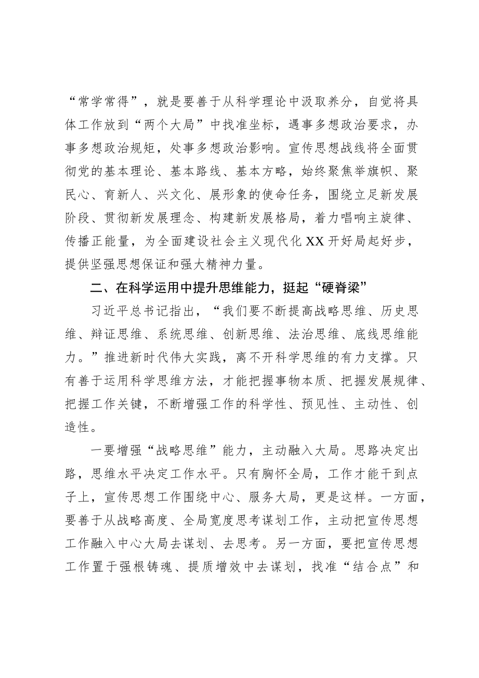 在县委理论学习中心组主题教育“不断提升政治能力、思维能力、实践能力”专题学习会上的交流发言(宣传部长)_第2页