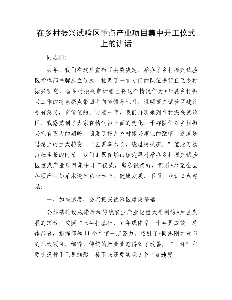 在乡村振兴试验区重点产业项目集中开工仪式上的讲话(3)_第1页