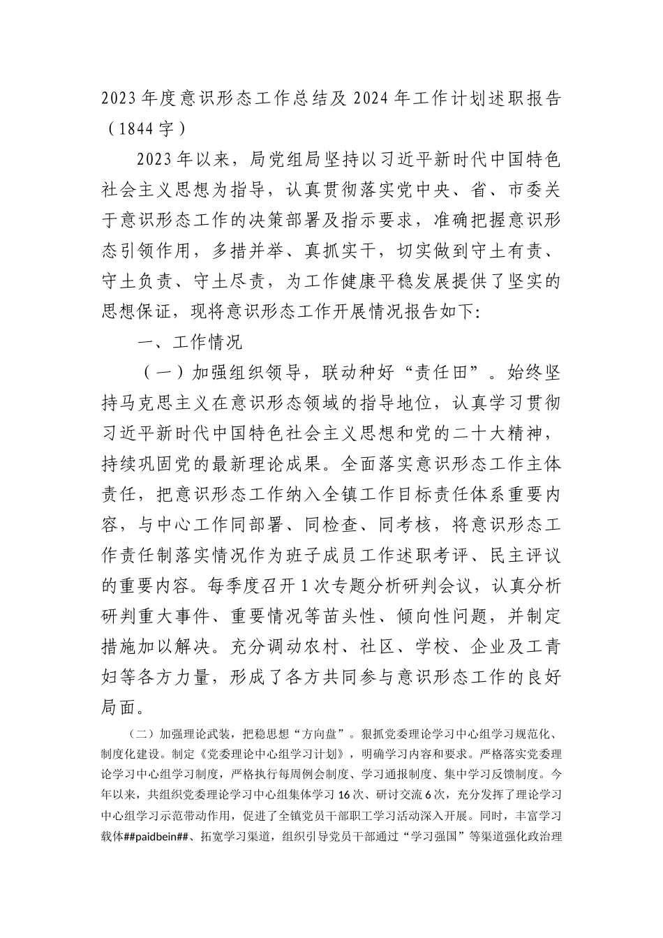 2023年度意识形态工作总结及2024年工作计划述职报告VIP免费