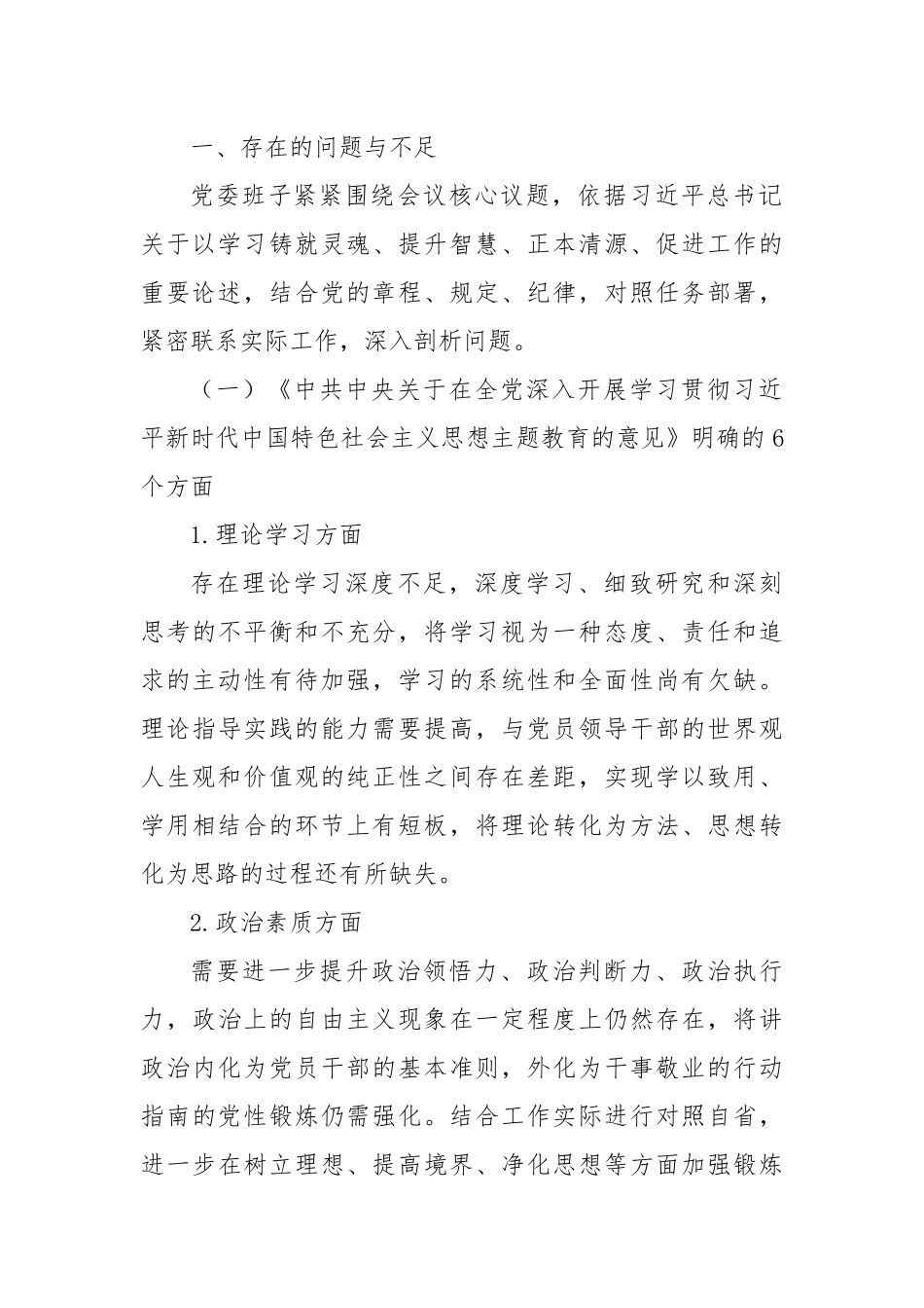 2023年主题教育民主生活会班子对照检查材料6个方面 12条具体要求 政绩观剖析_第3页