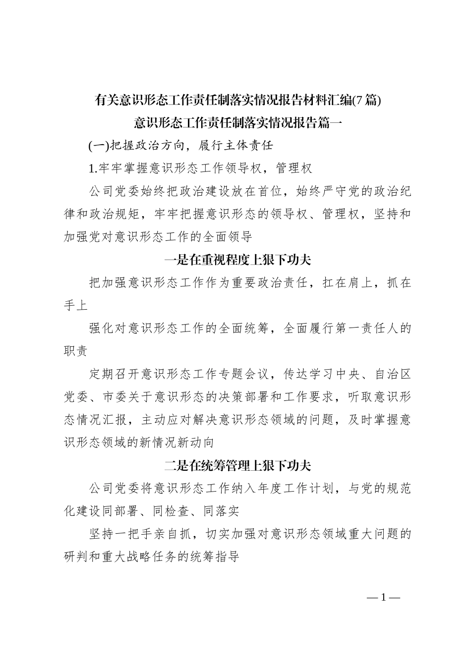 (7篇)有关意识形态工作责任制落实情况报告材料汇编_第1页
