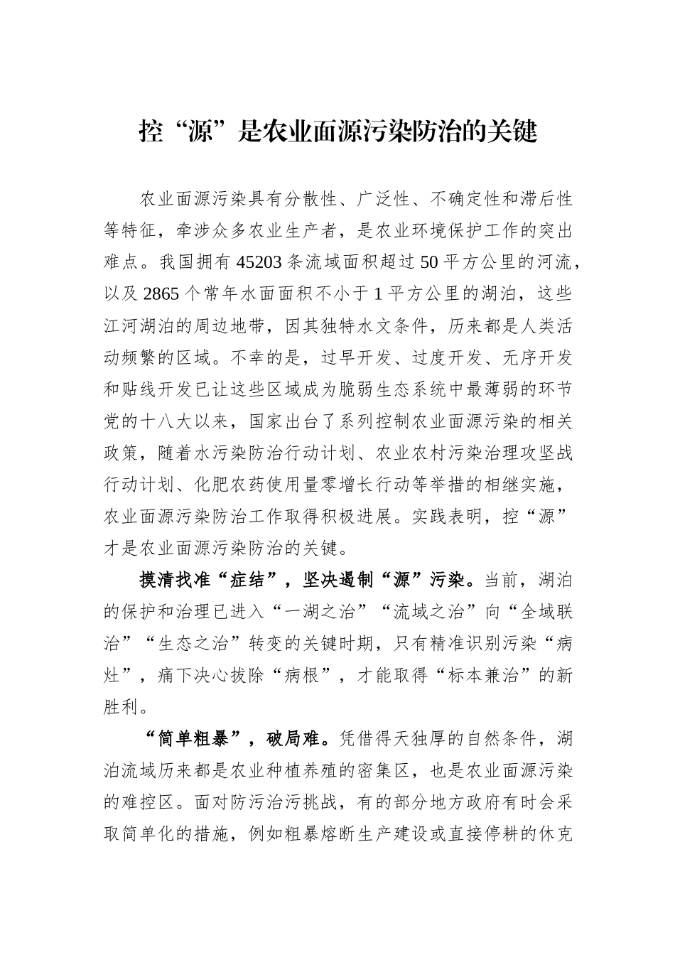控“源”是农业面源污染防治的关键农业面源污染具有分散性、广泛性、不确定性和滞后性等特征,牵涉众多农业生产者,是农业环境保护工作的突出难点。我国拥有 45203 条流域面积超过 50 平方公里的河流,以及 ...
