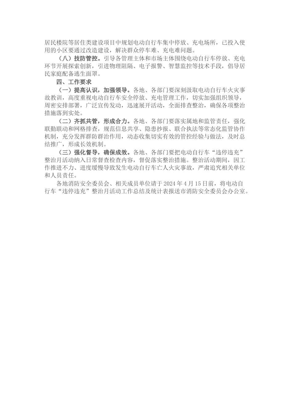 为认真贯彻落实习近平总书记重要指示精神,深刻汲取 x 重大火灾事故教训,进一步规范电动自行车停放、充电行为,坚决杜绝群死群伤火灾事故发生,结合消防安全集中除患攻坚大整治行动要求,按照省、市政府统一部...