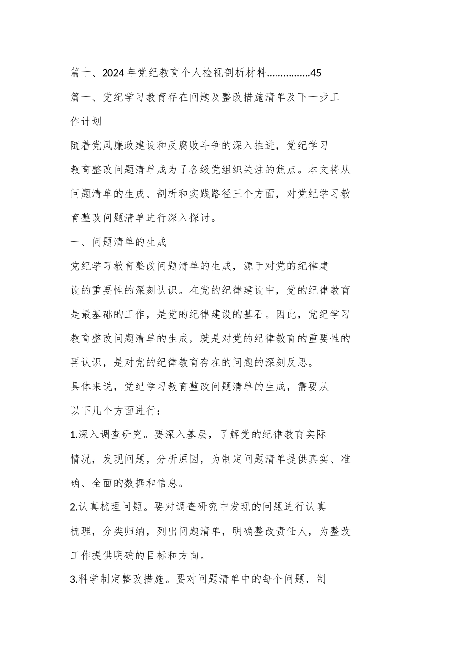 ( 10 篇)党纪学习教育存在问题及整改措施清单及下一步工作计划VIP免费