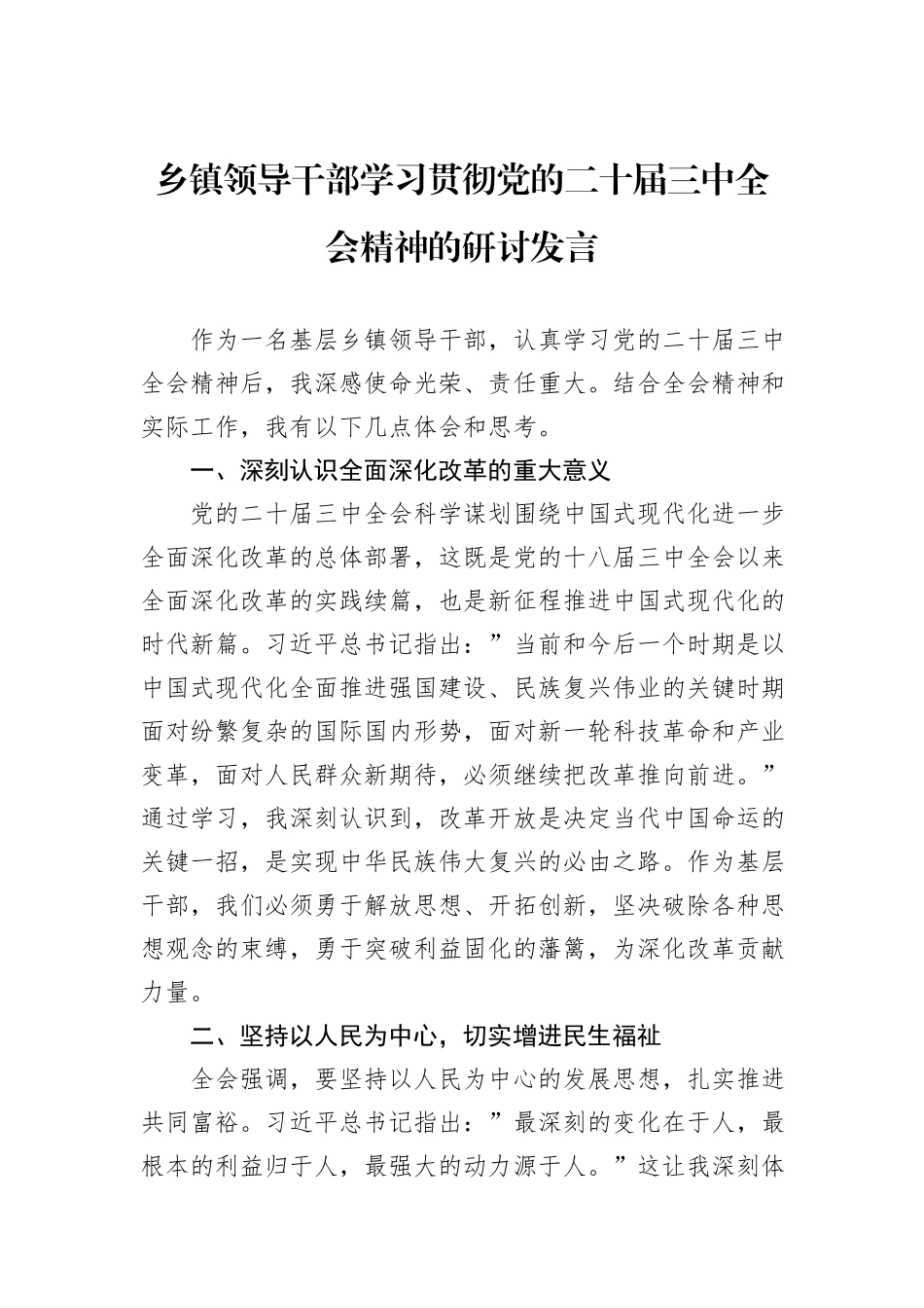 乡镇领导干部学习贯彻党的二十届三中全会精神的研讨发言_第1页