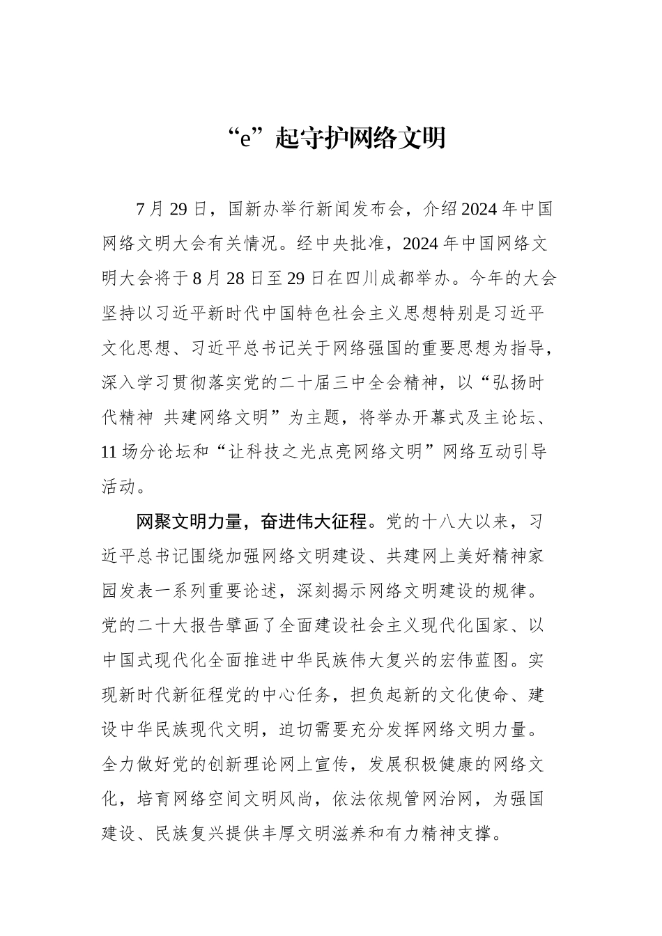 时事锐评汇编(27 篇)(202408)目录1. “e”起守护网络文明..................................................32. 探索“老幼共养” 守护“朝夕美好”......................63. 3000 亿元国债激活潜在...
