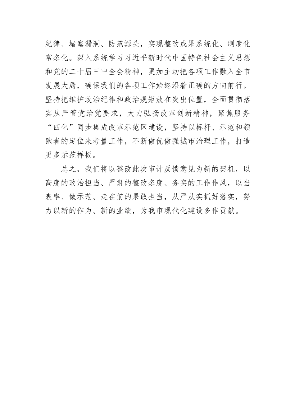 在离任审计结果反馈会上的表态发言各位领导,同志们:按照市委审计委统一部署,自今年 3 月起,市审计局审计组对我局离任领导 XX 同志任职期间履行经济情况进行了审计,今天,审计局各位领导又亲临我局专题反...