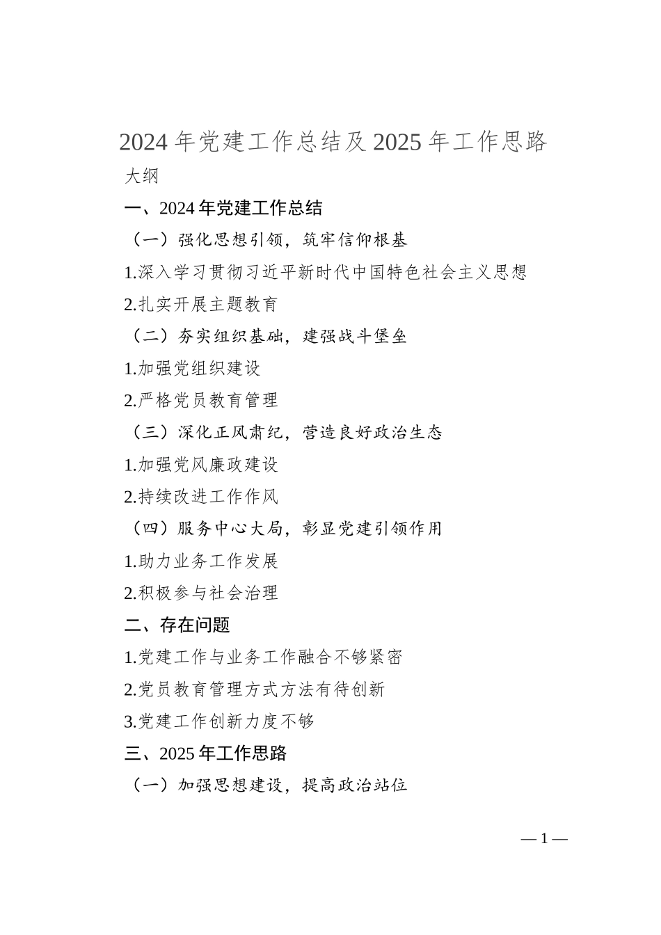 2024年党建工作总结及2025年工作思路_第1页