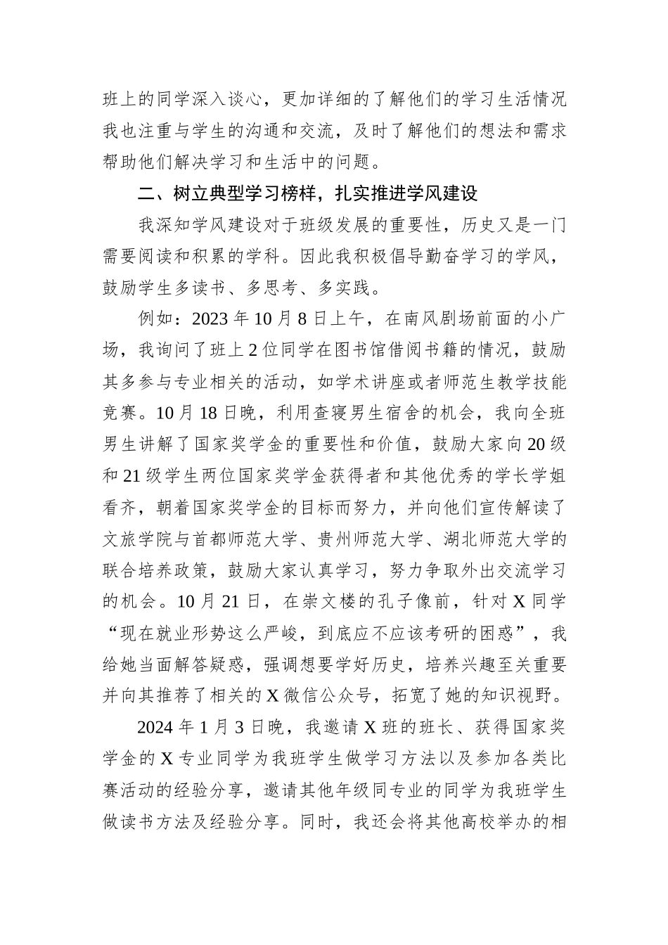 在校 2024 年度学生工作大会上发言尊敬的各位领导、老师,亲爱的各位同学:大家上午好!我是 X 学院 X 专业教师 X,今天非常荣幸能够在此向大家汇报我担任班主任以来的工作情况,我将以“用心用情,做好学...