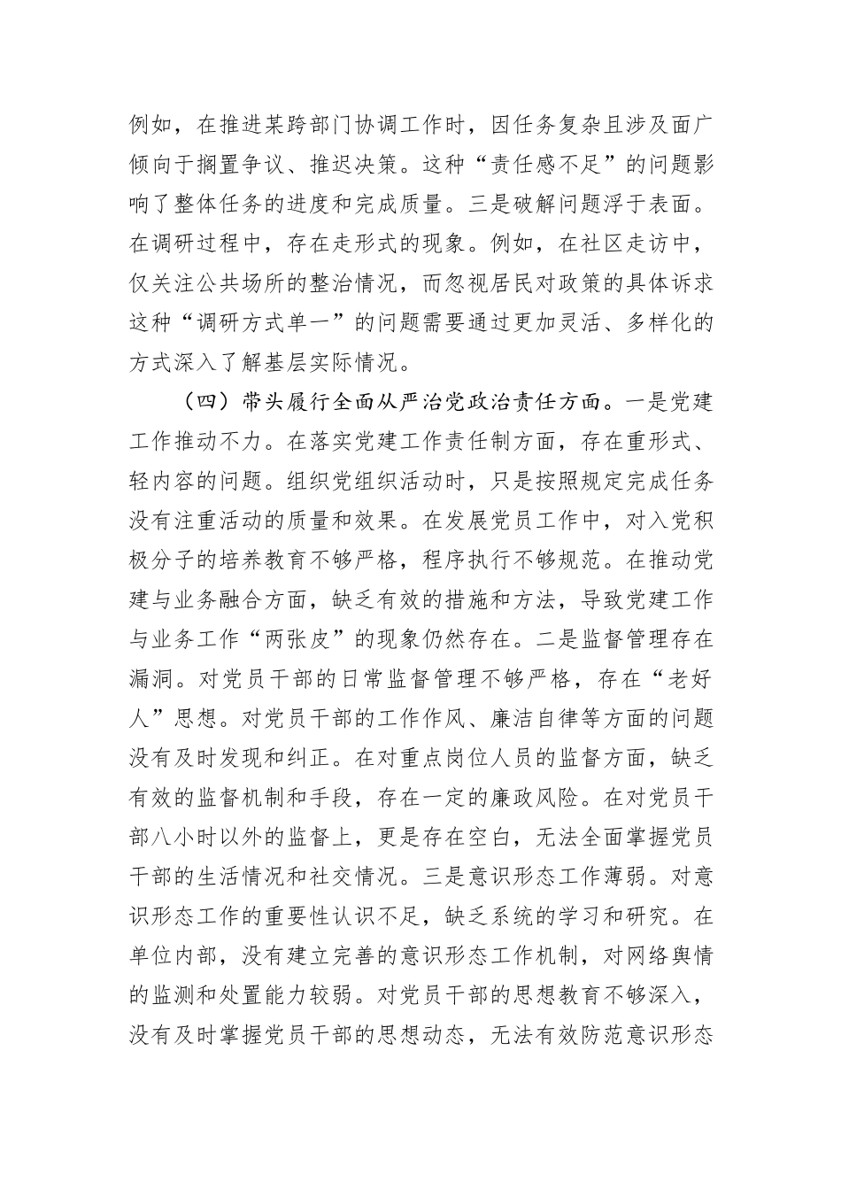 某市直单位领导干部2024年度专题民主生活会、组织生活会对照检查材料(聚焦“四个带头”)_第3页