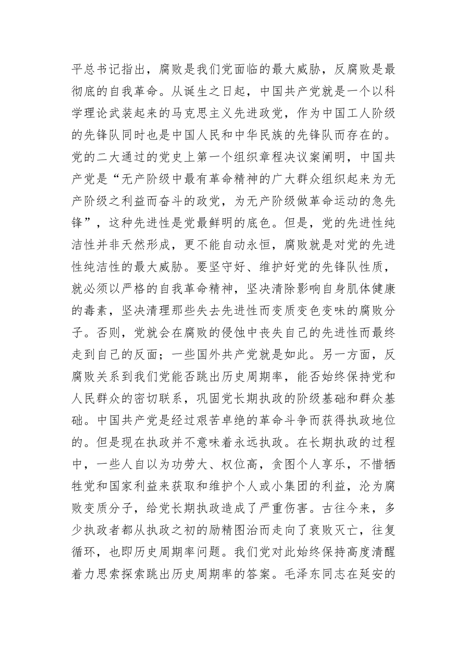 廉政党课讲稿:以自我革命精神坚决打赢反腐败斗争攻坚战持久战总体战_第2页
