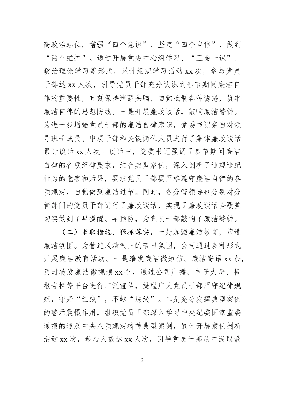 国有企业党委2025年春节期间廉洁自律工作情况报告_第2页