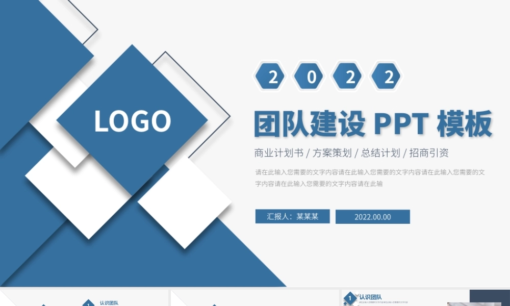 团队建设 PPT 模板商业计划书 / 方案策划 / 总结计划 / 招商引资请在此输入您需要的文字内容请在此输入您需要的文字内容请在此输入您需要的文字内容请在此输入您需要的文字内容请在此输汇报人:某某某202...