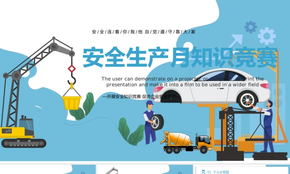 The user can demonstrate on a projector or computer, or print the presentation and make it into a film to be used in a wider field安全生产月知识竞赛安 / 全 / 连 / 着...
