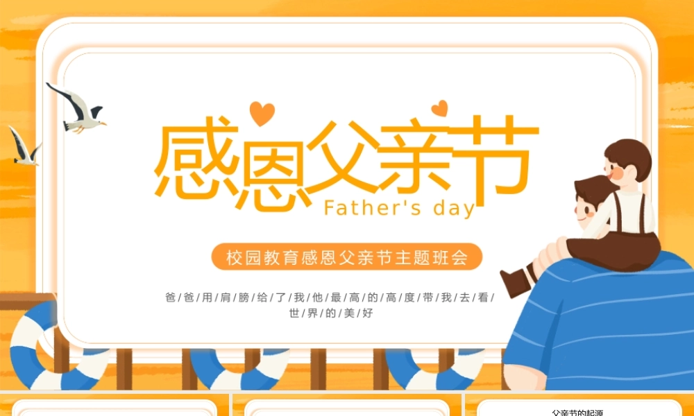 校 园 教 育 感 恩 父 亲 节 主 题 班 会感恩父亲节Father's day爸 / 爸 / 用 / 肩 / 膀 / 给 / 了 / 我 / 他 / 最 / 高 / 的 / 高 / 度 / 带 / 我 / 去 / 看 /...