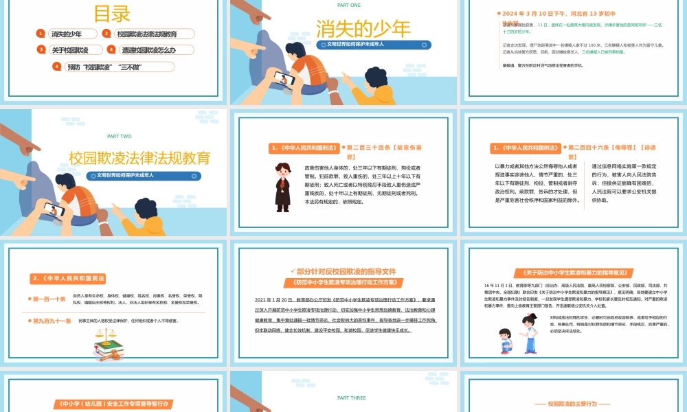 拒绝校园欺凌守护少年的你 3 名初中生杀人埋尸,校园霸凌成为隐形杀手文|明|世|界|如|何|保|护|未|成|年|人目录CONTENT消失的少年1校园欺凌法律法规教育2关于校园欺凌3遭遇校园欺凌怎么办4预防“校...