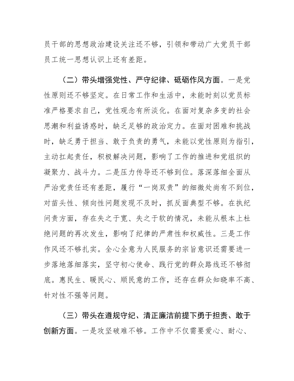 局领导2024年度民主SH会对照检查材料(“四个带头”方面).docx_第3页