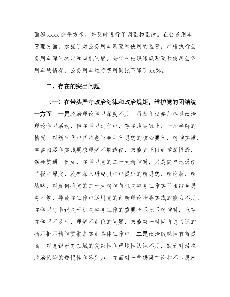 市机关事务服务中心党组书记、主任关于2024年度民主SH会个人对照检视剖析材料.docx_第3页