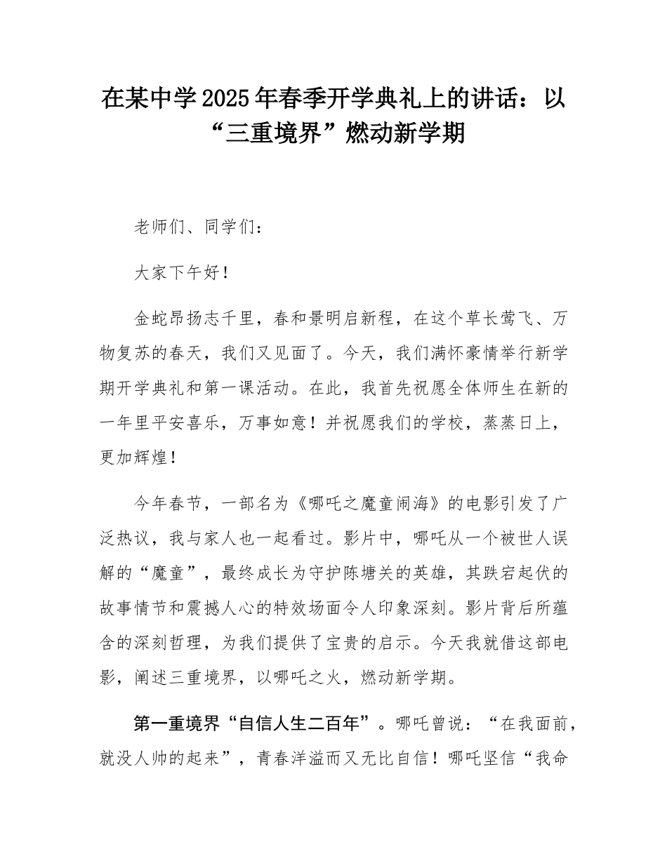 在某中学2025年春季开学典礼上的讲话:以“三重境界”燃动新学期.docx_第1页