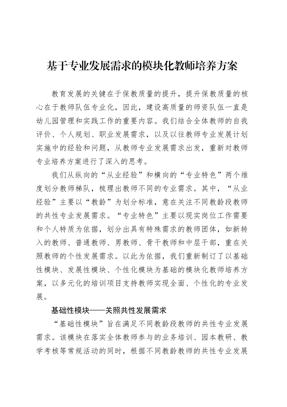 基于专业发展需求的模块化教师培养方案.docx_第1页