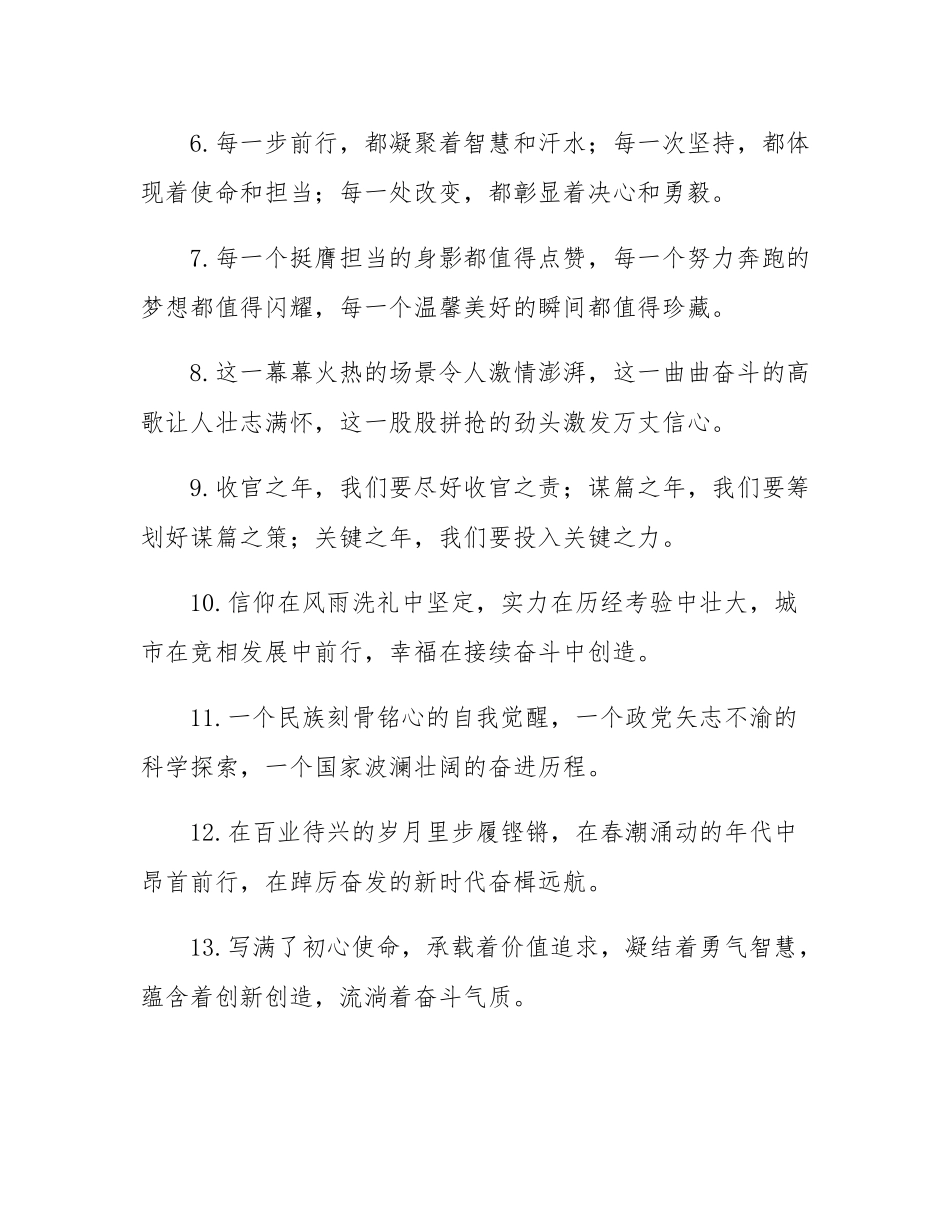 排比句 40 例(2025 年 3 月 8 日) 1.共同奏响“转型发展、跨越赶超”的激扬乐章,共同描绘“城乡融合、宜居宜业”的和美图景,共同感受“政惠民生、民拥政情”的温暖力量,共同付出“锲而不舍、滴水穿...