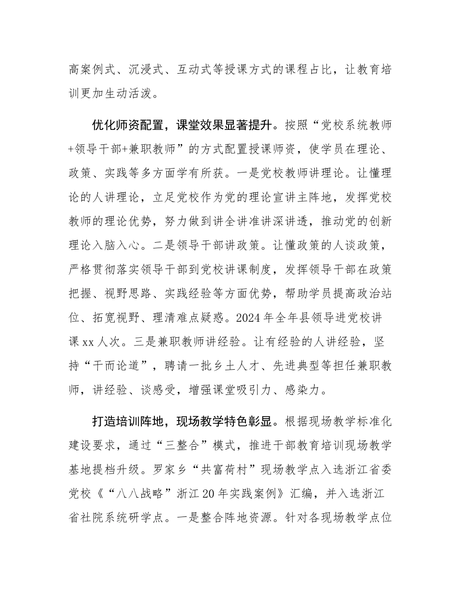 推动履职能力培训更加精准管用 浙江省龙游县委党校紧紧围绕《全国干部教育培训规划(2023—2027 年)》提出的“履职能力培训更加精准管用”“多渠道多方面开展履职能力培训”等目标要求,精心编排课程、优化师...