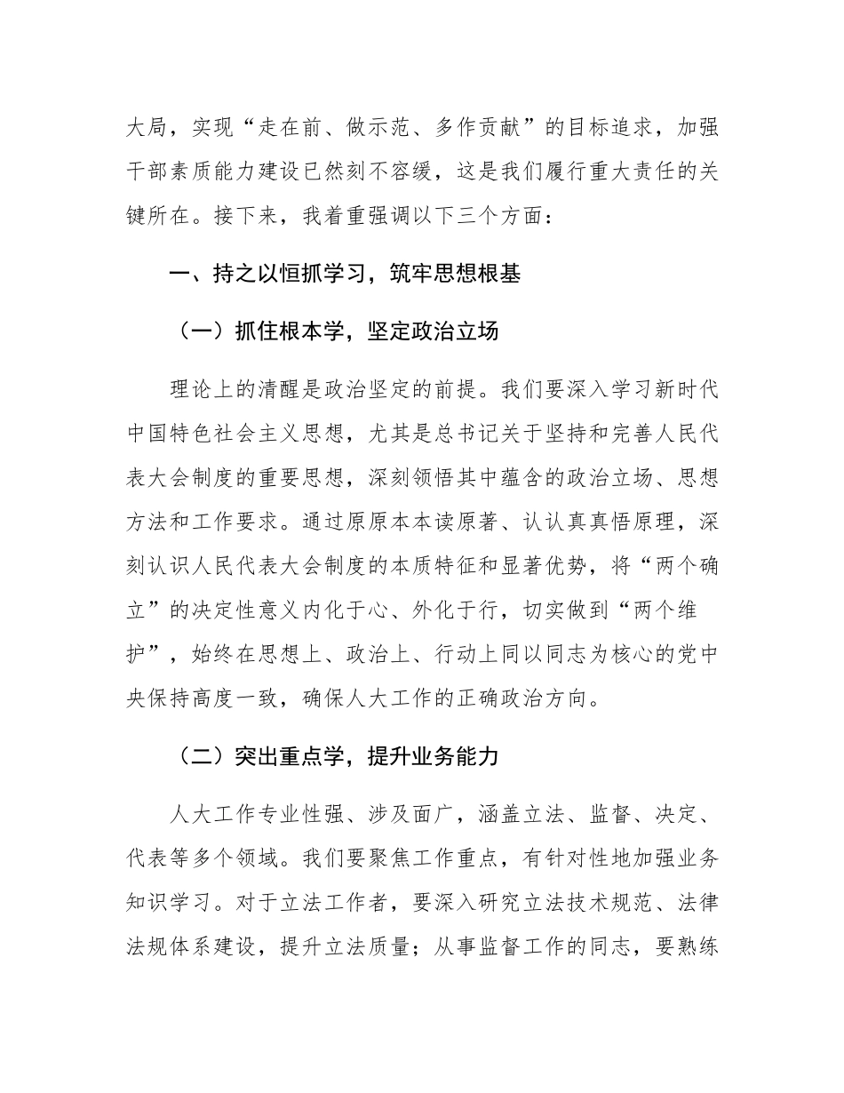在人大系统“加强素质能力建设,提高服务履职水平”动员会上的讲话.docx