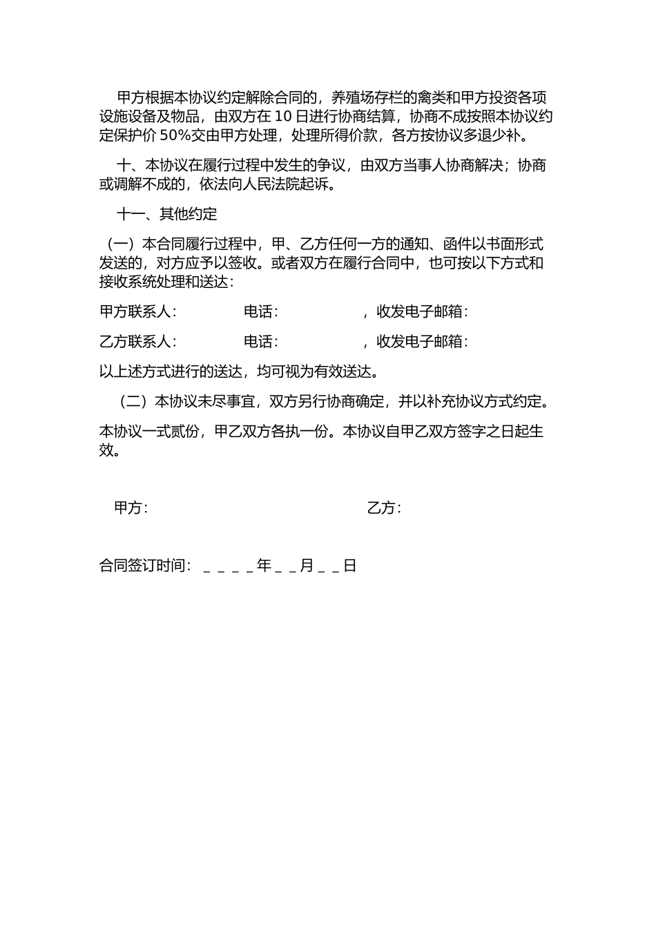 合伙协议书甲方: 乙方: 经甲、乙双方协商,现就合伙经营养殖的事宜达成如下协议: 一、甲方出资建设养殖场地、购买种苗资金、所有成本费用,以及负责赣州市章贡区及周边的宣传销售。乙方负责养殖场全部事宜...