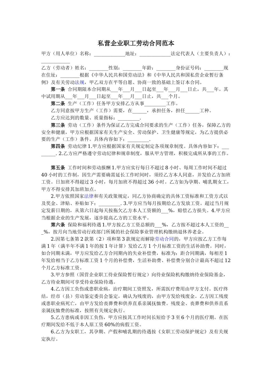 私营企业职工劳动合同.docxVIP专享VIP免费优质