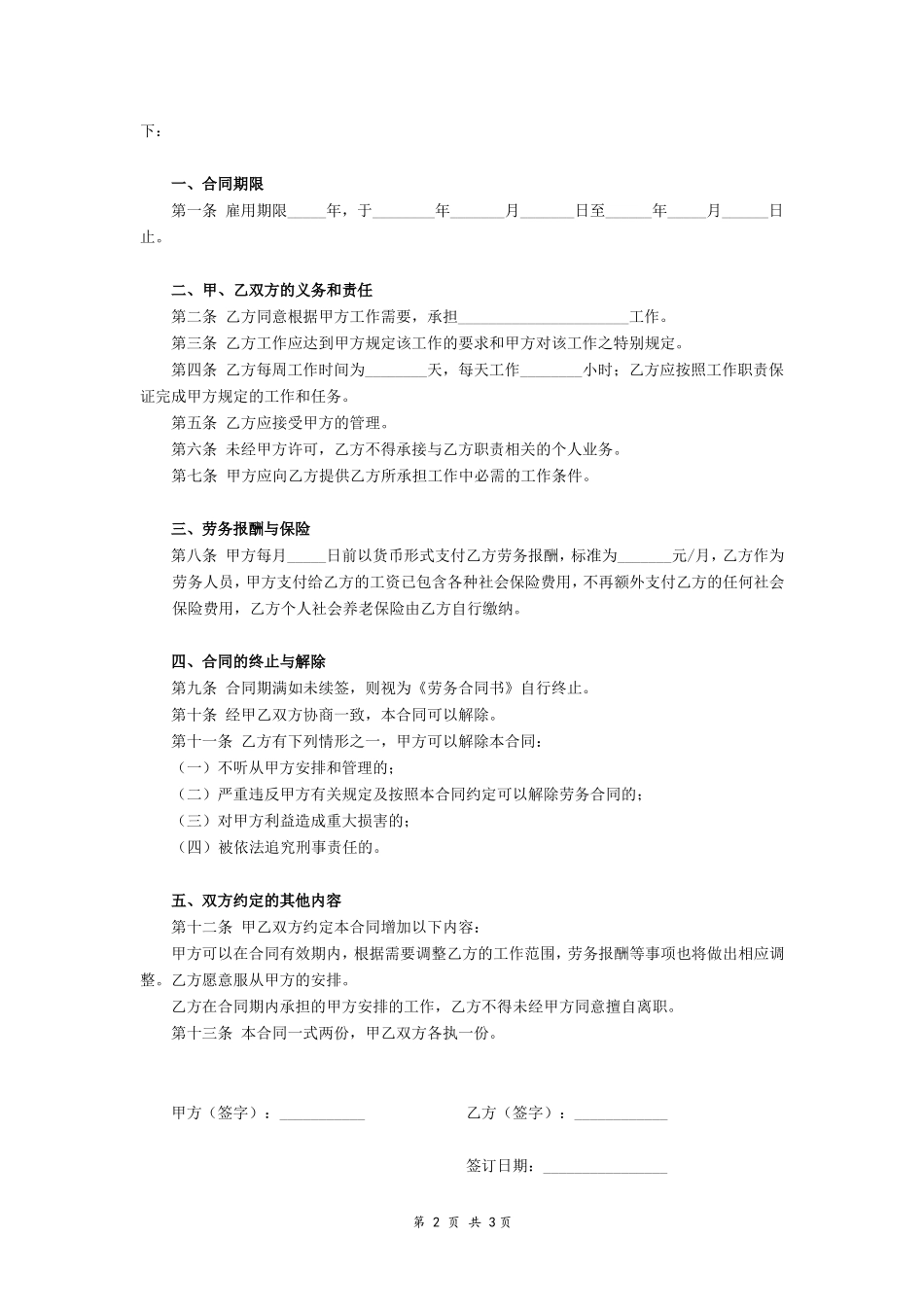 劳务合同书 (简版).doc_第3页