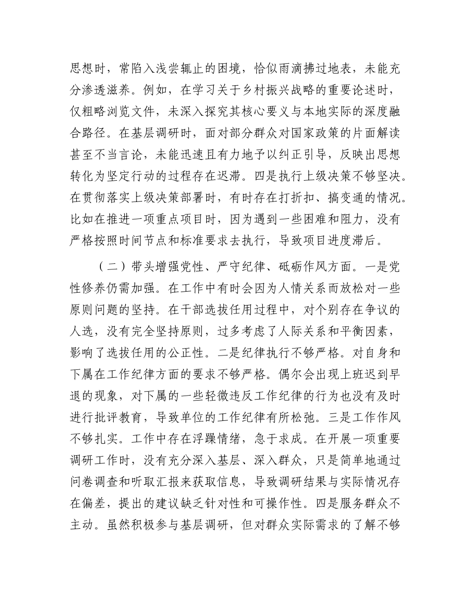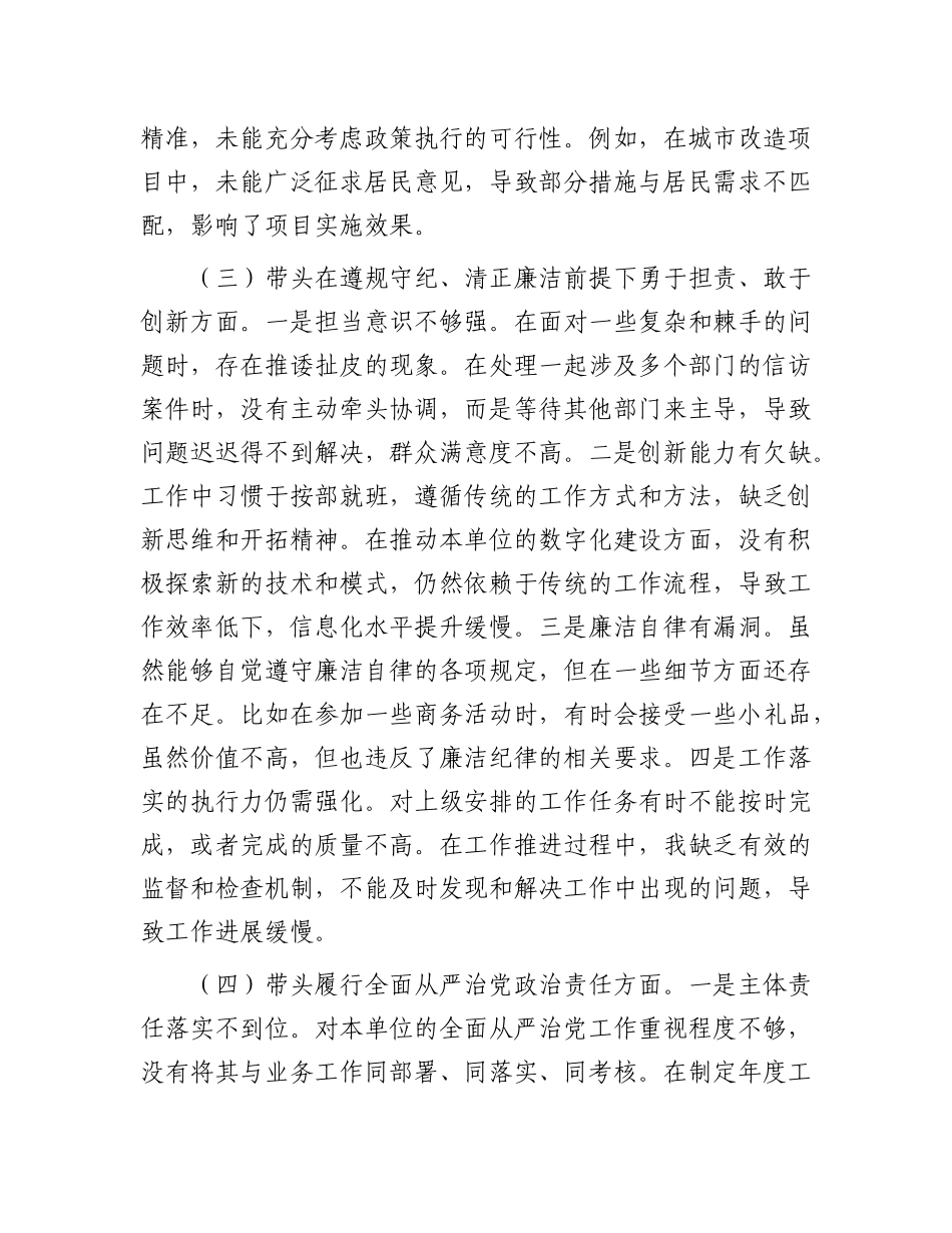 某市直部门X员干部2024年度专题民主生活会、组织生活会对照检查材料(四个带头).docx_第3页