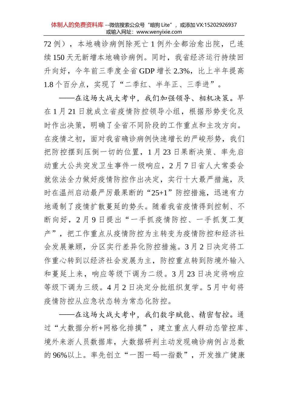 袁家军:巩固拓展抗疫大战大考成果  加快推进以人为核心的现代化——在全省抗击新冠肺炎疫情总结表彰大会上的讲话(2020年11月13日)_第2页