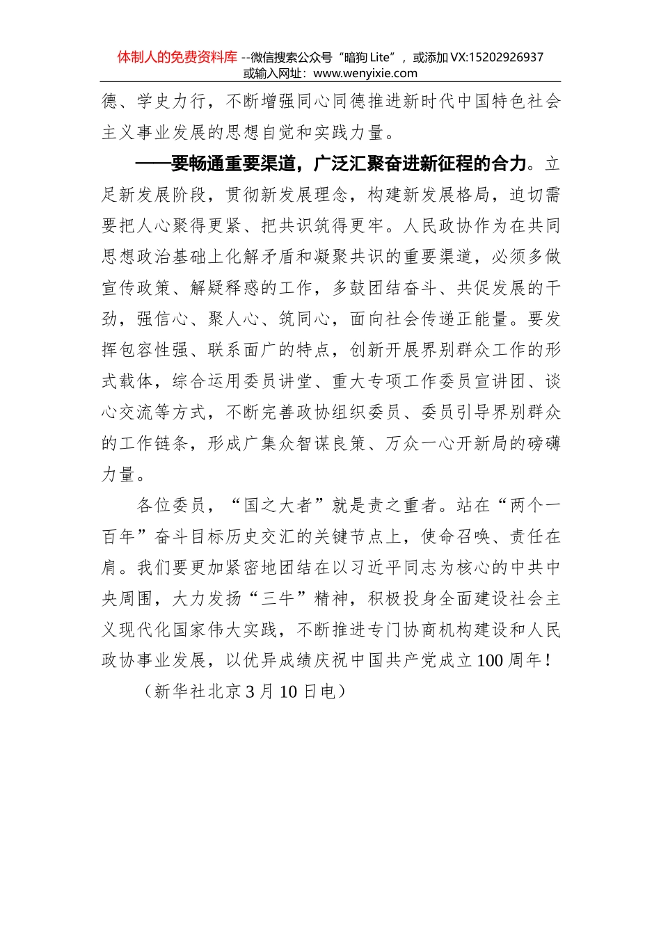 体制人的免费资料库 --微信搜索公众号“暗狗 Lite”,或添加 VX:15202926937或输入网址:www.wenyixie.com在全国政协十三届四次会议闭幕会上的讲话汪 洋(2021 年 3 月 10 日)各位委员,同志们:中国人...