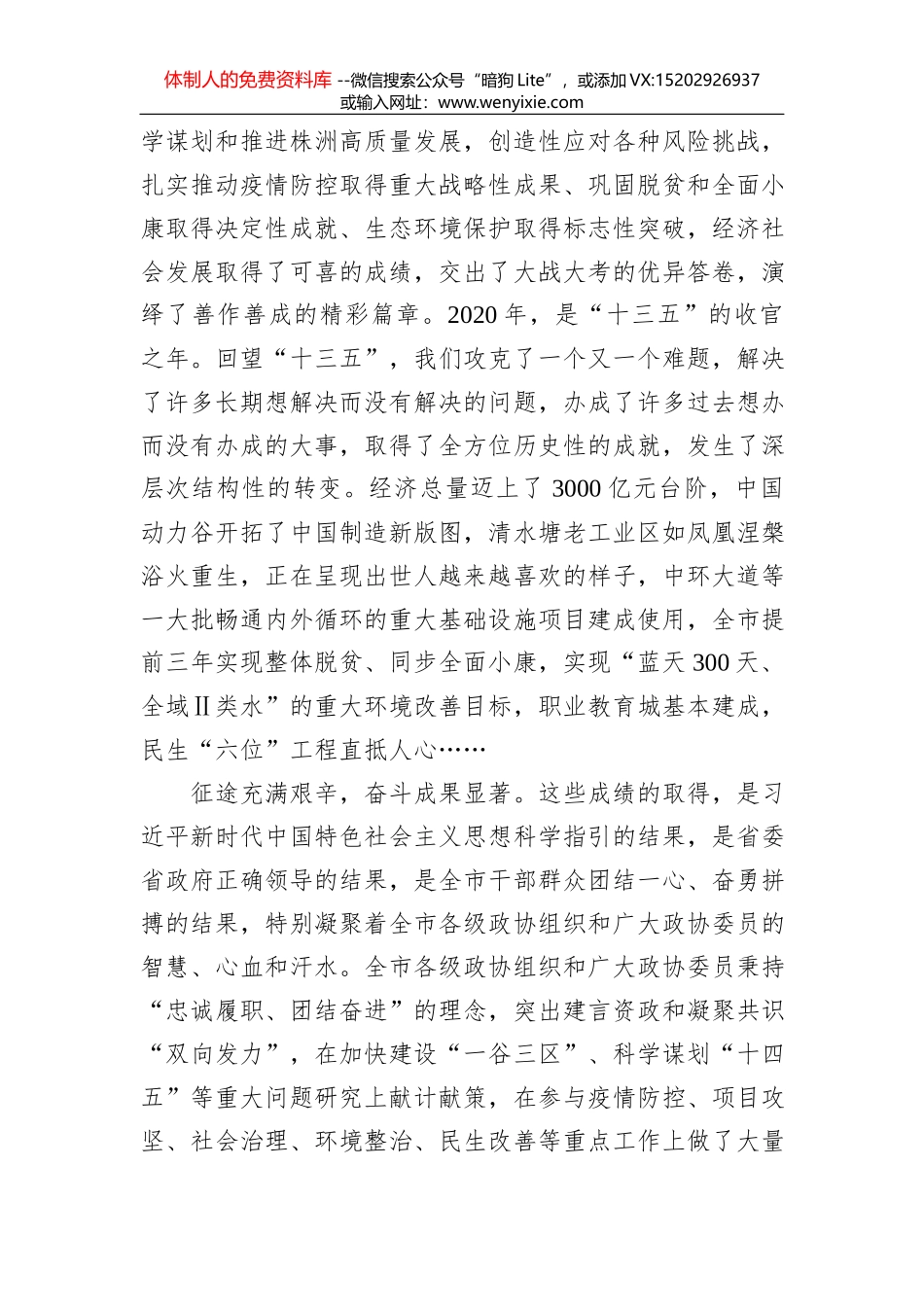 体制人的免费资料库 --微信搜索公众号“暗狗 Lite”,或添加 VX:15202926937或输入网址:www.wenyixie.com不负好时代 彰显新担当 为实施“三高四新”战略实现“两个加快”作出新的更大贡献——在市政协九届...