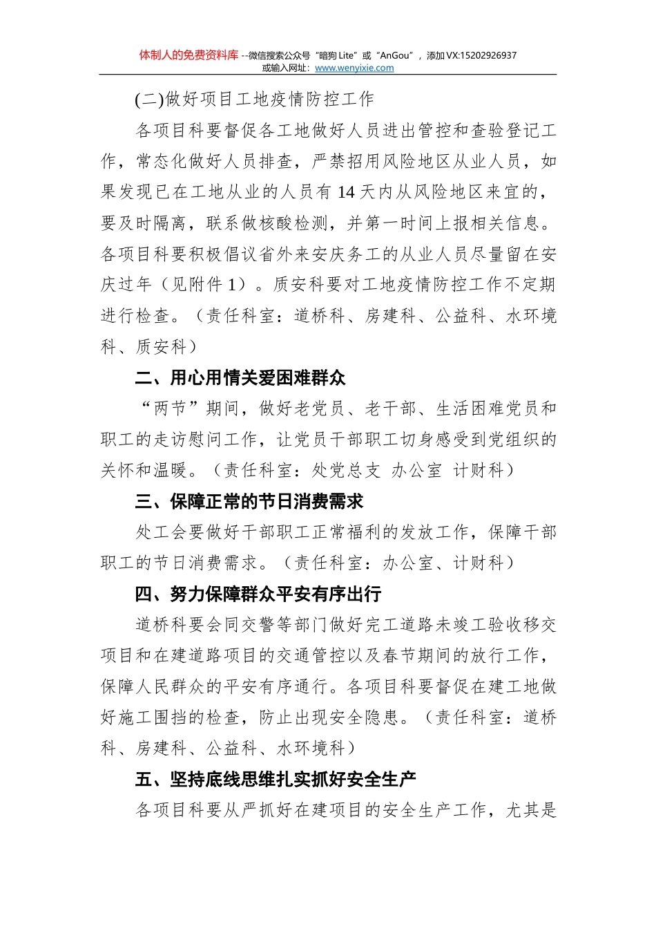 体制人的免费资料库 --微信搜索公众号“暗狗 Lite”或“AnGou”,添加 VX:15202926937或输入网址:www.wenyixie.com市重点工程处关于做好 2021 年元旦春节期间有关工作的通知发布日期:2021-01-14 发布机构...