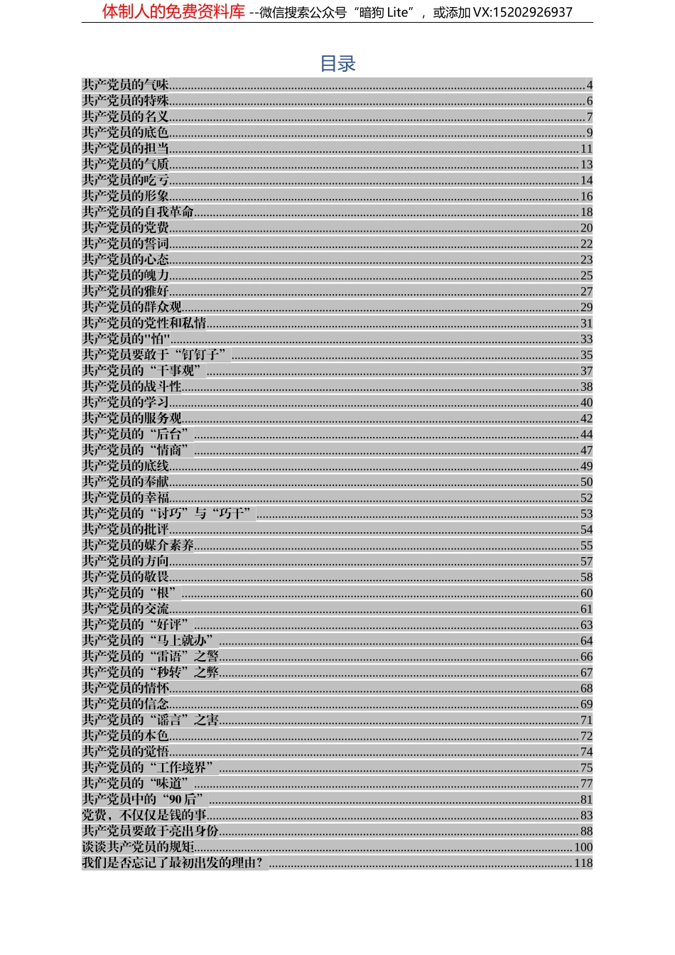 体制人的免费资料库 --微信搜索公众号“暗狗 Lite”,或添加 VX:15202926937精品微党课汇编整理时间:2017 年 9 月 12 日体制人的免费资料库 --微信搜索公众号“暗狗 Lite”,或添加 VX:15202926937目...