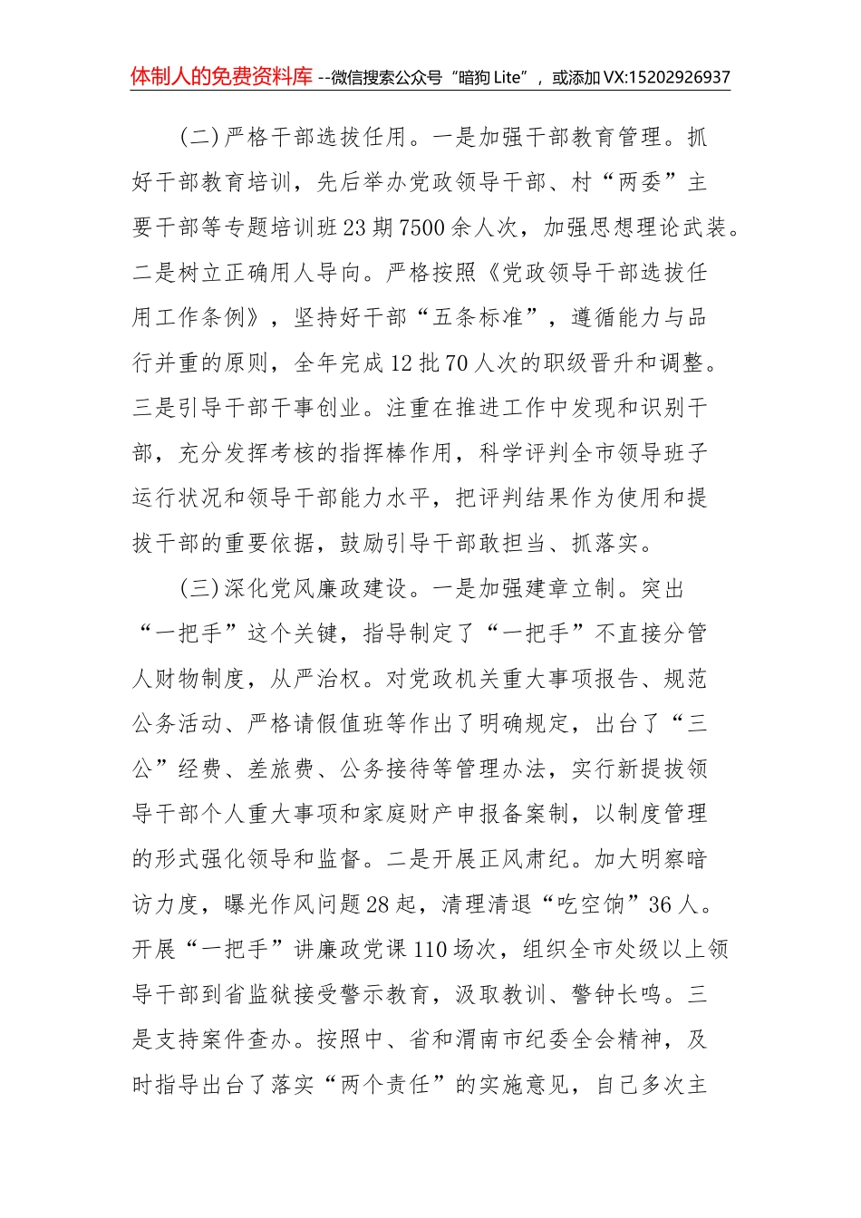 体制人的免费资料库 --微信搜索公众号“暗狗 Lite”,或添加 VX:15202926937抓党建工作和履行主体责任述职报告中共 XXX 市委书记 XXX 2017 年,我始终牢记揽全局、带队伍、正风气的第一责任,以群众路线...