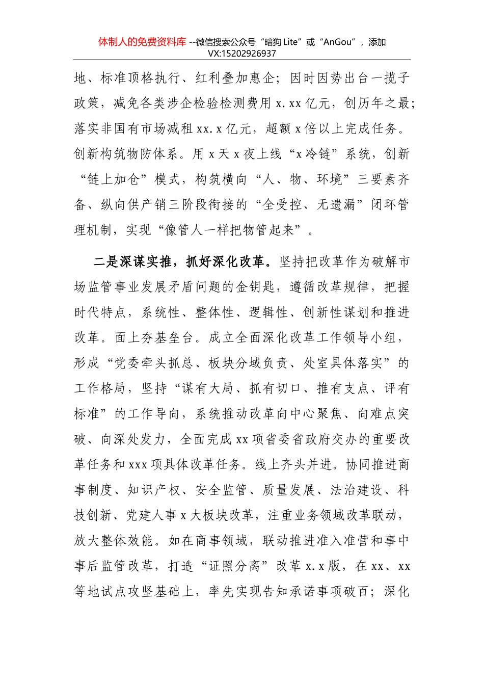 体制人的免费资料库 --微信搜索公众号“暗狗 Lite”或“AnGou”,添加VX:15202926937市场监管局(知识产权局)2021 年工作总结一是慎终如始,抓好疫情防控。认真贯彻省委省政府“两手硬、两战赢”总体部署,坚...