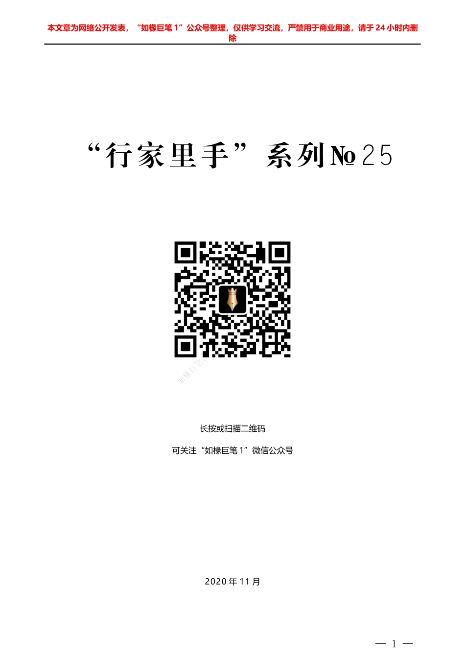 本文章为网络公开发表,“如椽巨笔 1”公众号整理,仅供学习交流,严禁用于商业用途,请于 24 小时内删除“行家里手”系列№25长按或扫描二维码可关注“如椽巨笔 1”微信公众号2020 年 11 月— 1 —本文...