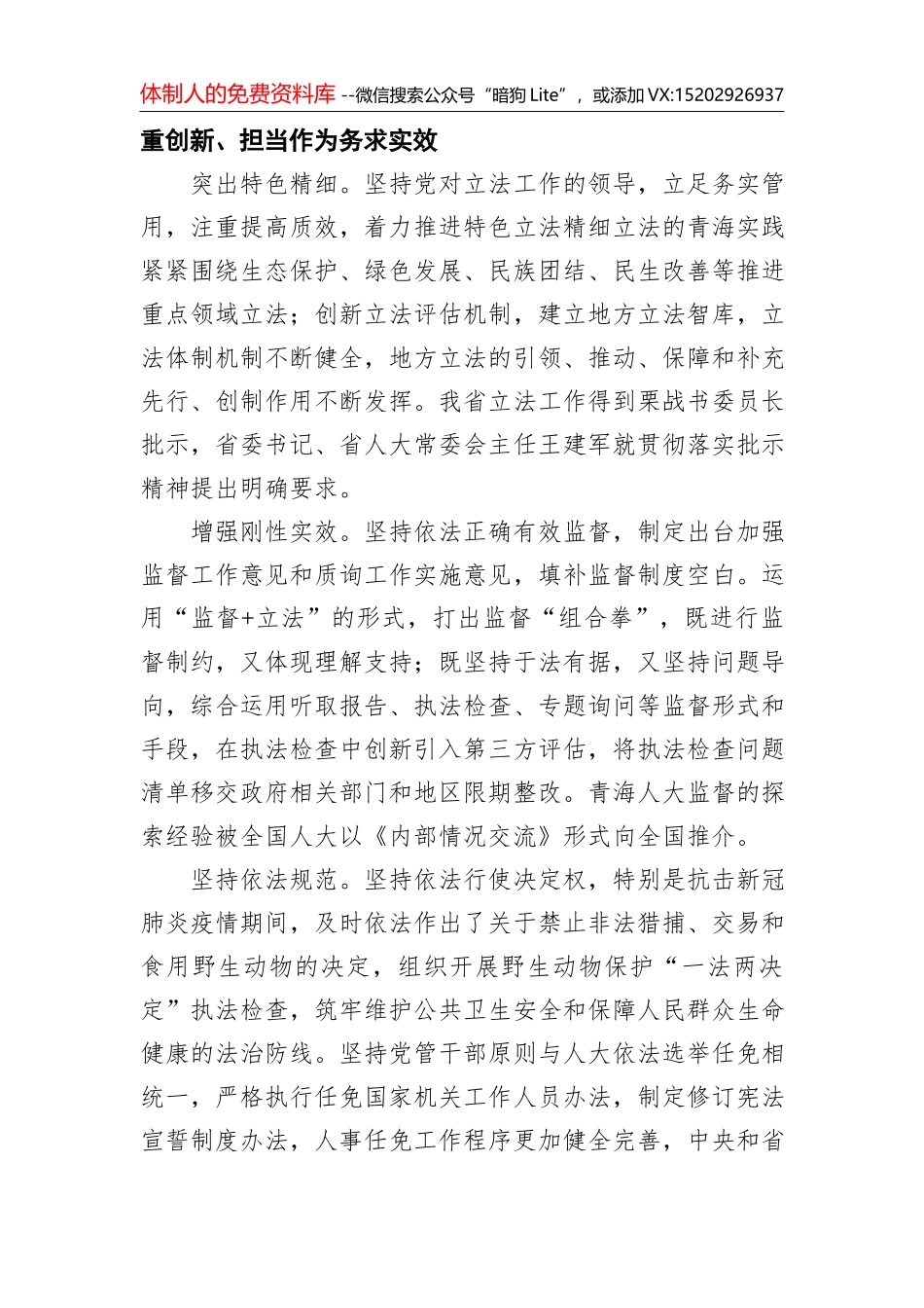 体制人的免费资料库 --微信搜索公众号“暗狗 Lite”,或添加 VX:15202926937服务大局有担当 依法履职重实效——省人大常委会五年工作综述2020 年 08 月 18 日�栉风沐雨,春华秋实。省委第四次全省人大...