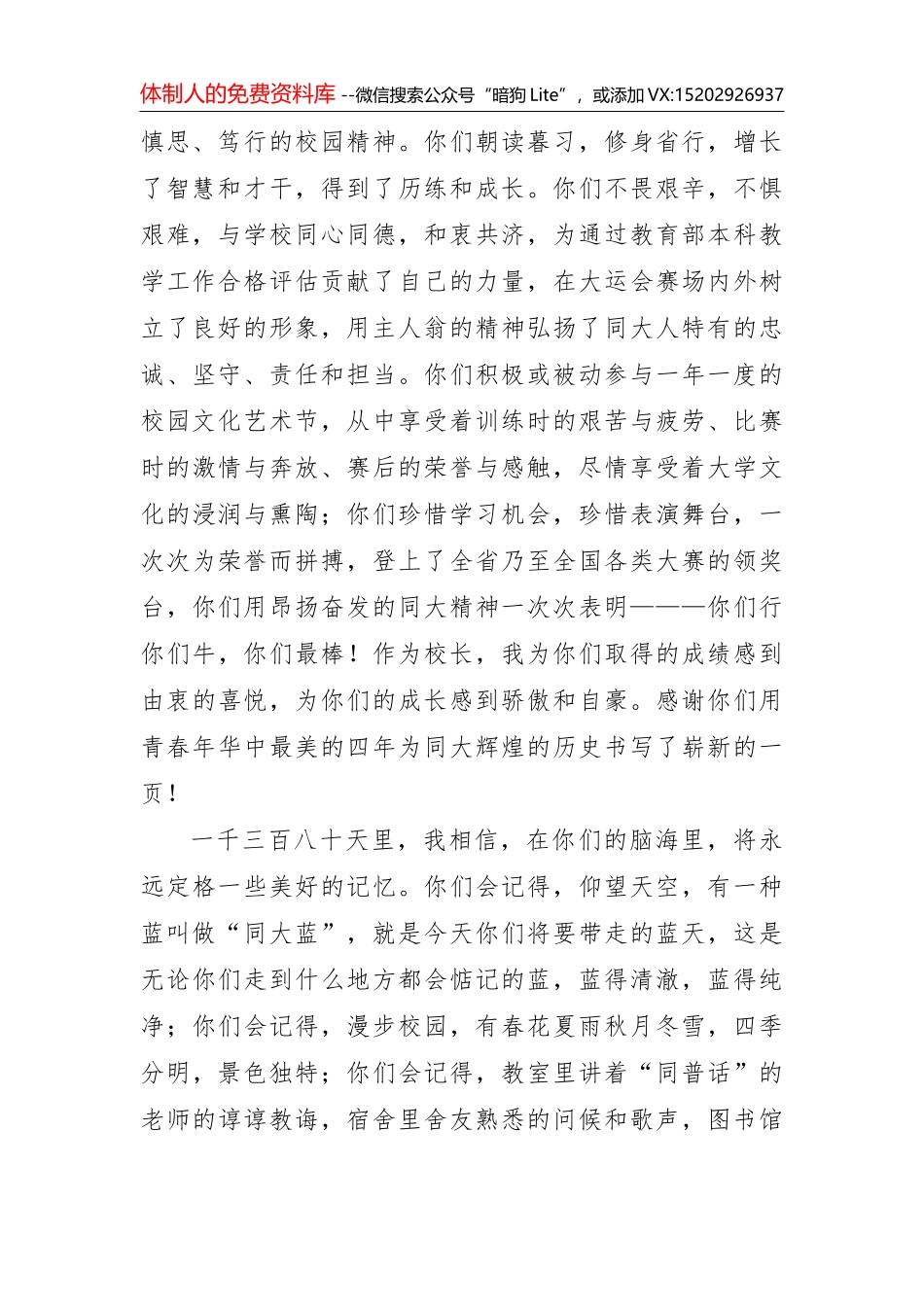 体制人的免费资料库 --微信搜索公众号“暗狗 Lite”,或添加 VX:15202926937做时代的创客——在大同大学 2016 届学生毕业典礼上的讲话校长 冯锋亲爱的 2016 届毕业生、全体同大人:今天,我们怀着无比欣...