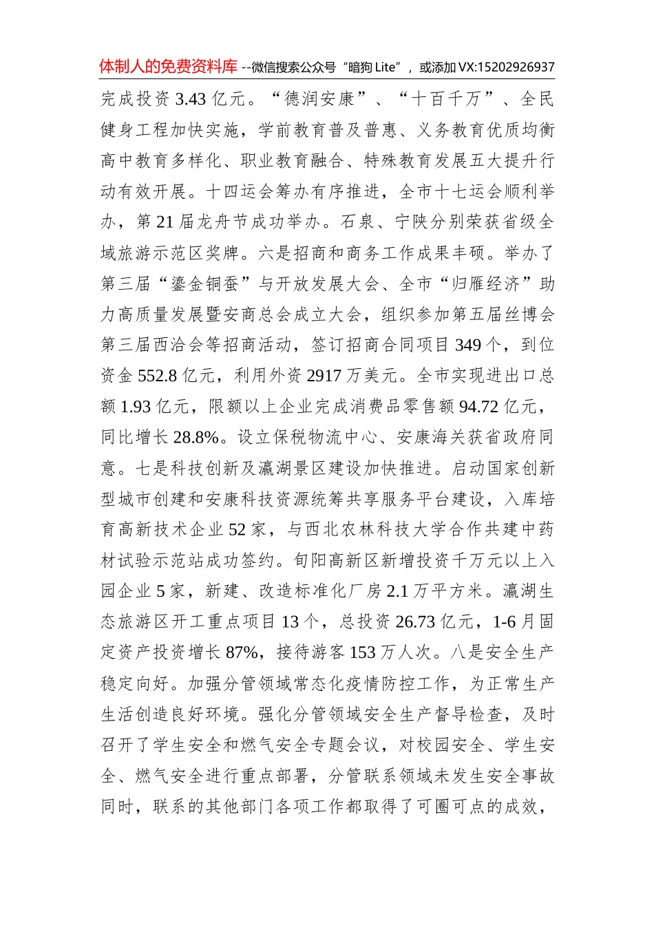 体制人的免费资料库 --微信搜索公众号“暗狗 Lite”,或添加 VX:15202926937在分管联系部门半年工作推进会上的讲话寇全安2021 年 7 月 12 日今天,我们召开半年工作推进会,主要目的是总结上半年工作,安...