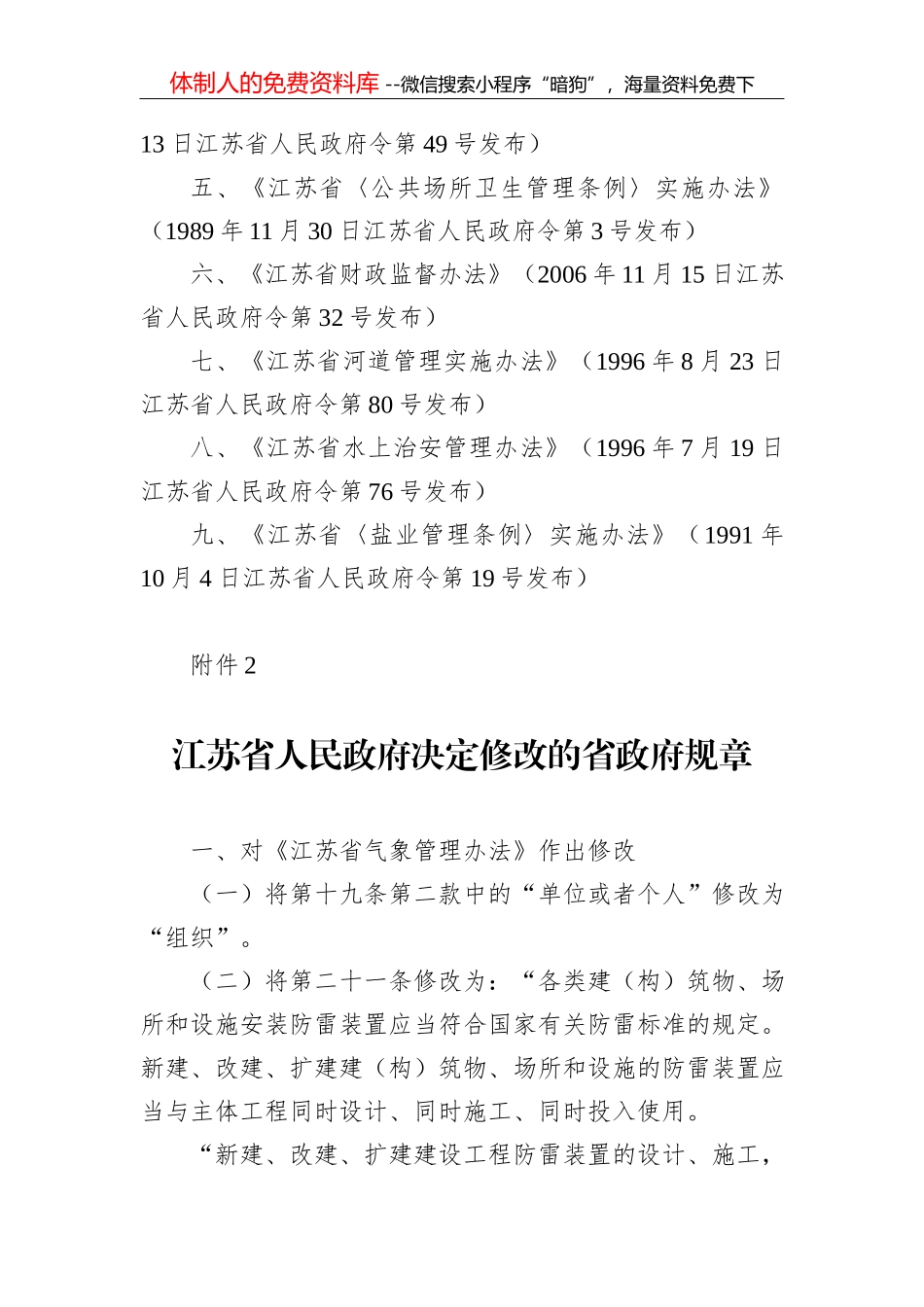 体制人的免费资料库 --微信搜索小程序“暗狗”,海量资料免费下江苏省人民政府关于 废止和修改部分省政府规章的决定为了保障简政放权、放管结合、优化服务改革措施落实和推进生态文明建设,省政府对取消行政审...