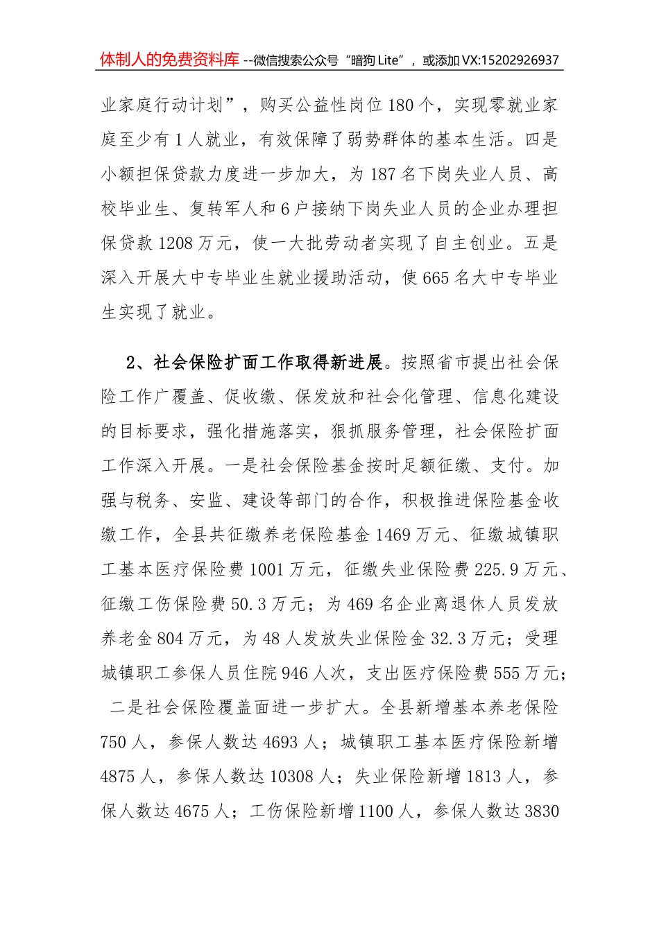 体制人的免费资料库 --微信搜索公众号“暗狗 Lite”,或添加 VX:152029269372010 年全县劳动保障和劳务 经济工作会议上的讲话 同志们: 这次全县劳动保障和劳务经济工作会议,是县委、县政府经过认真研究...