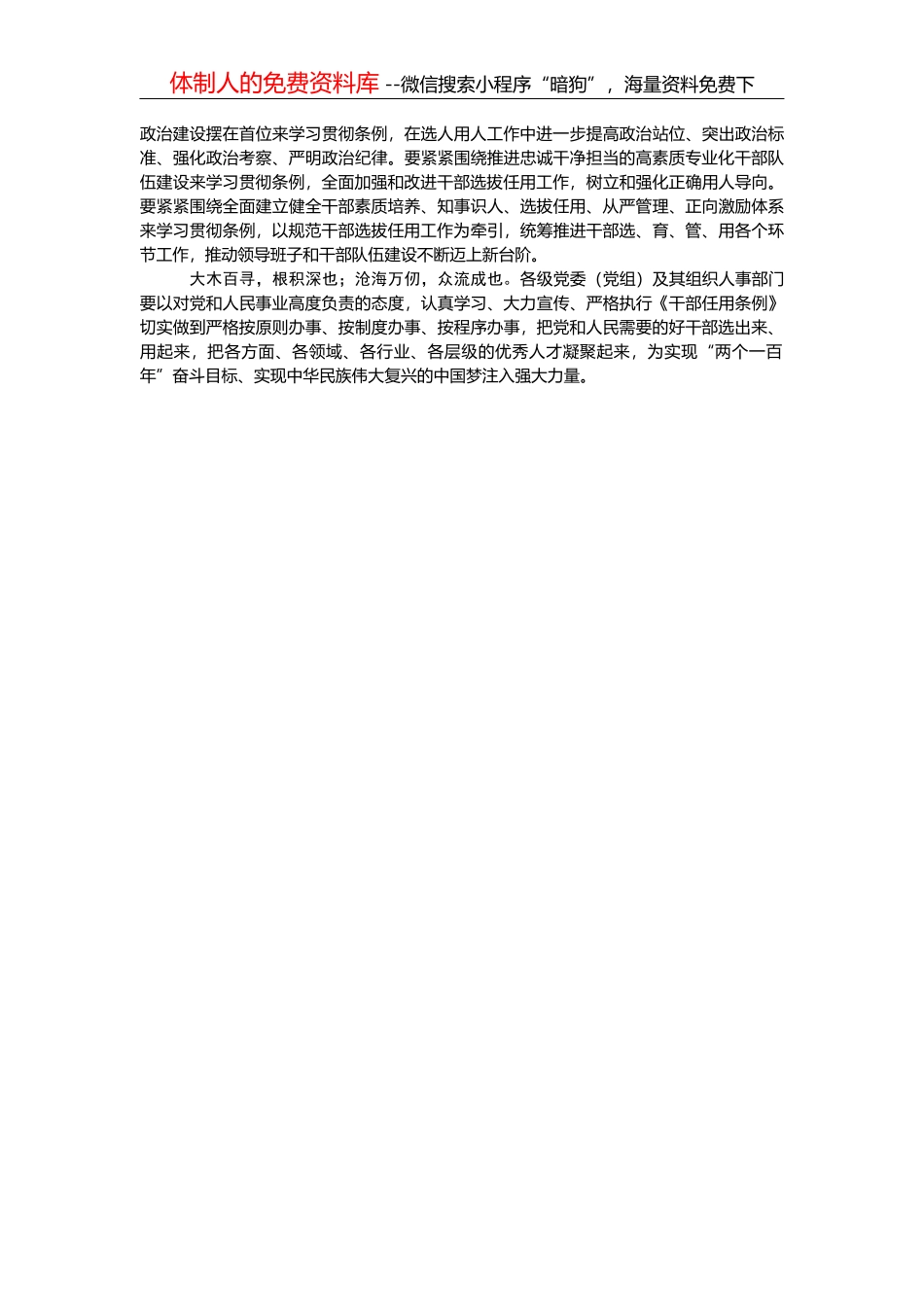 体制人的免费资料库 --微信搜索小程序“暗狗”,海量资料免费下新时代选人用人的基本规范——一论学习贯彻新修订的《党政领导干部选拔任用工作条例》仲祖文2019 年 03 月 18 日近日,中央印发了新修订的《...