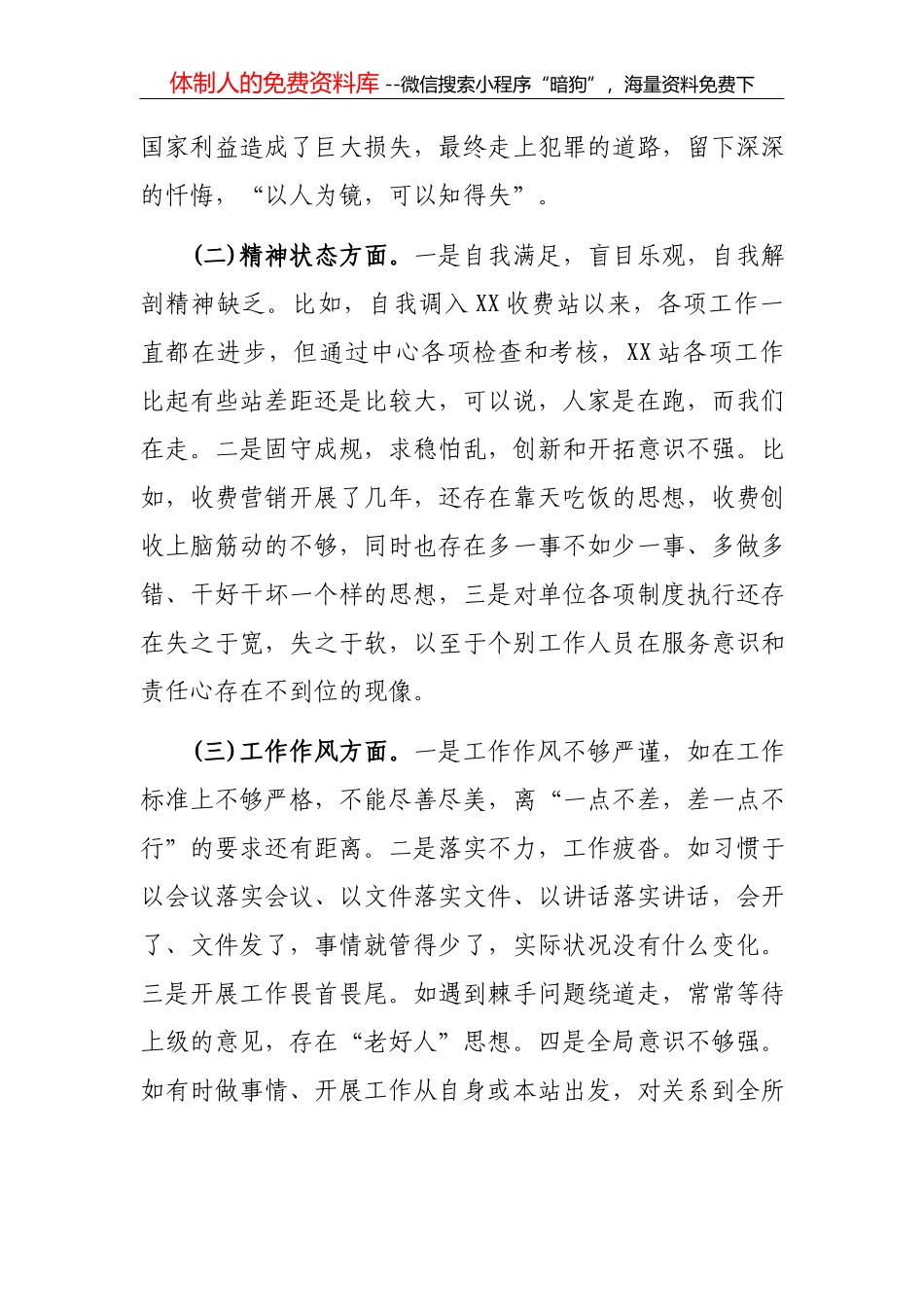 体制人的免费资料库 --微信搜索小程序“暗狗”,海量资料免费下组织生活会个人对照检查情况汇报(收费站)按照上级对这次组织生活会有关要求,本人结合思想和工作实际,着重从思想政治、精神状态、工作作风三个...