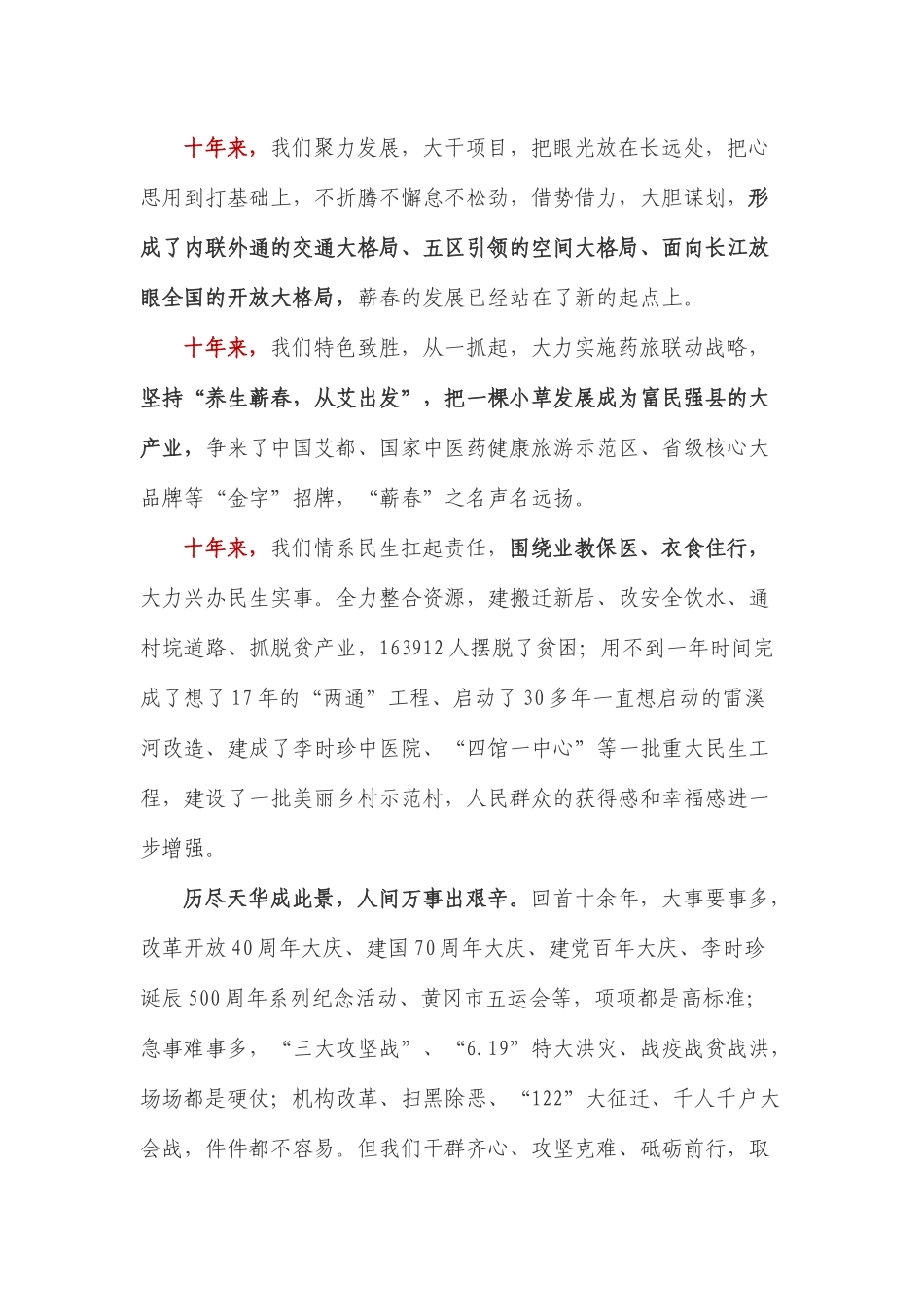 离任蕲春县委书记时感怀赵少莲(2021 年 6 月 7 日) 我是 2011 年 1 月 26 日来蕲春工作的,转眼已过十年,从四十出头到年过半百,回首过去的时光,感触很多很多。3786 个日日夜夜,放在蕲春悠久的...