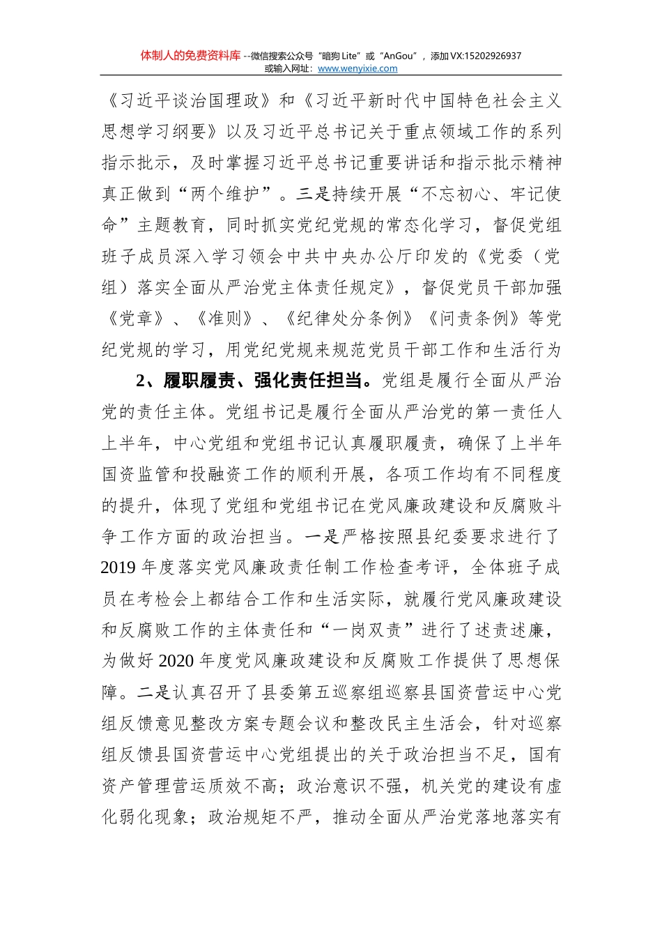 体制人的免费资料库 --微信搜索公众号“暗狗 Lite”或“AnGou”,添加 VX:15202926937或输入网址:www.wenyixie.com宜丰县国资营运中心 2020 年党风廉政建设和防腐败工作总结2020 年 12 月 09 日2020 ...