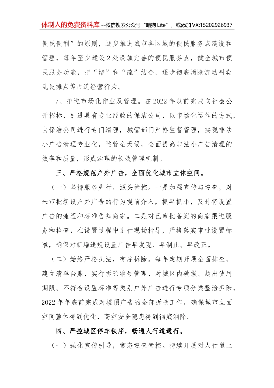 体制人的免费资料库 --微信搜索公众号“暗狗 Lite”,或添加 VX:15202926937城市管理行政执法大队五年工作计划执法大队以 XX 市成功创建全国文明城市,巩固创建成果为目标,着力推进城市管理精细化、执法流...
